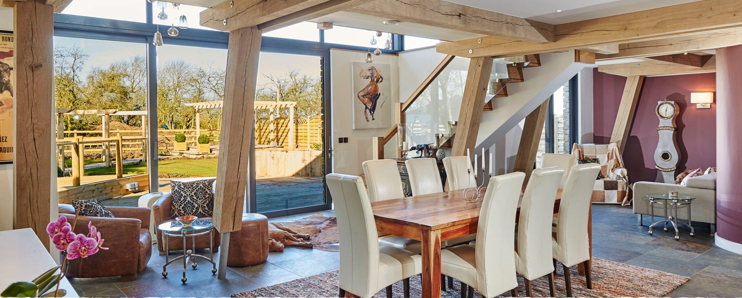 The building includes a green oak frame 'wrapped' in SIPs panels to create a highly insulated building, the high quality windows and the ventilation system further contribute to the eco credentials of this beautiful family home.